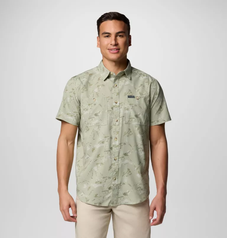 - La camisa de manga corta Columbia Pfg cuenta con la exclusiva tela UPF para máxima protección contra los rayos UVA y UVB, tela transpirable que absorbe la humedad para mantenerte fresco y seco mientras estás fuera.