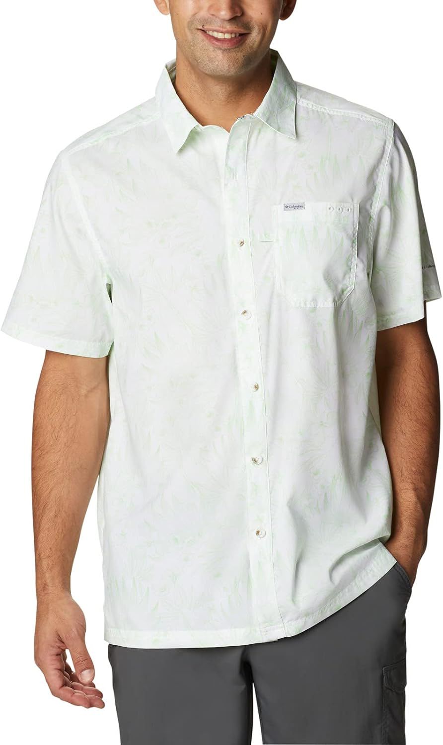 - La camisa de manga corta Columbia Pfg cuenta con la exclusiva tela UPF para máxima protección contra los rayos UVA y UVB, tela transpirable que absorbe la humedad para mantenerte fresco y seco mientras estás fuera.