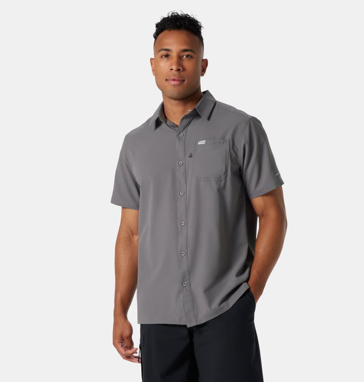 • La camisa de manga corta Columbia Pfg cuenta con la exclusiva tela UPF  para máxima protección contra los rayos UVA y UVB, tela transpirable que absorbe la humedad para mantenerte fresco y seco mientras estás fuera.