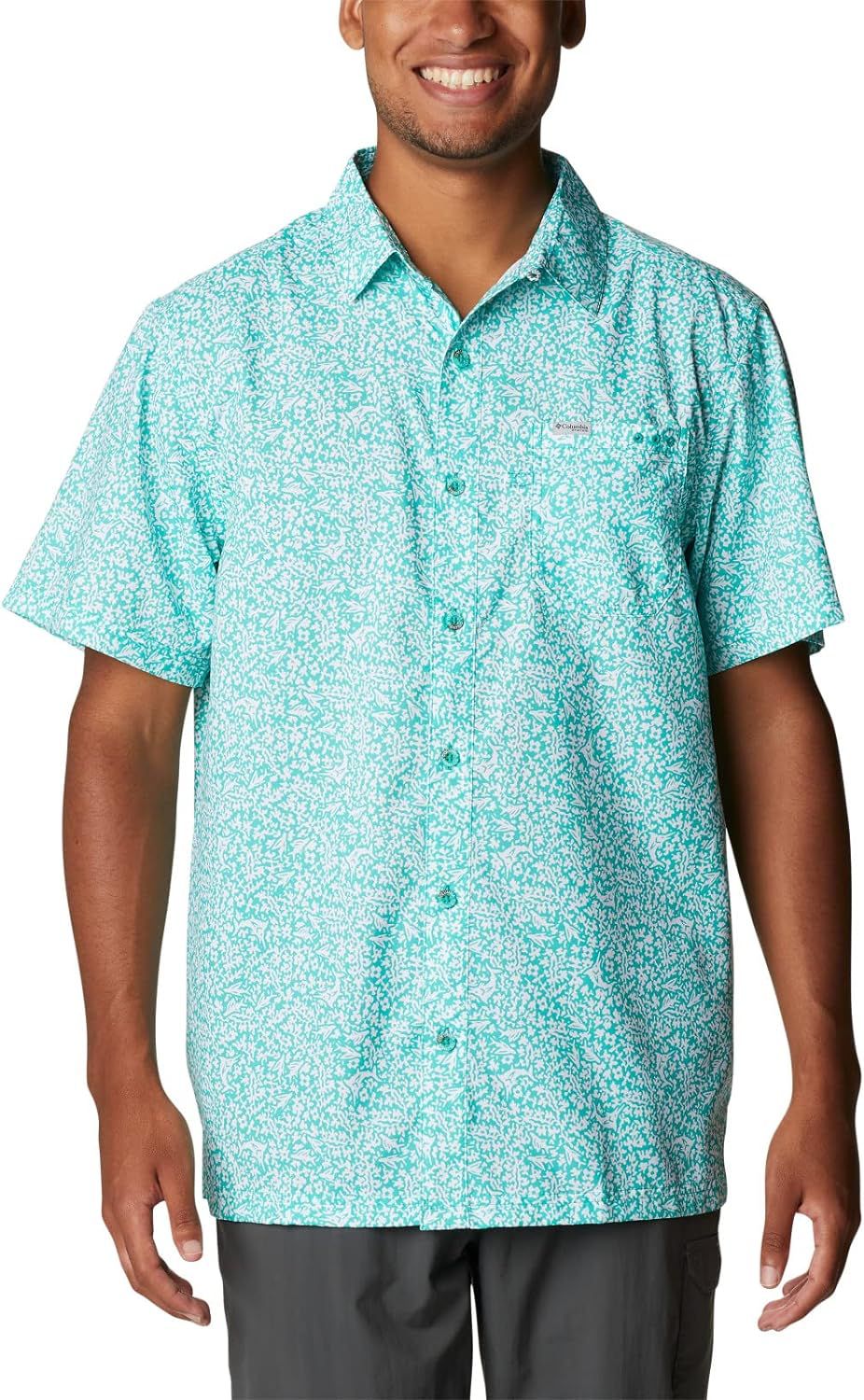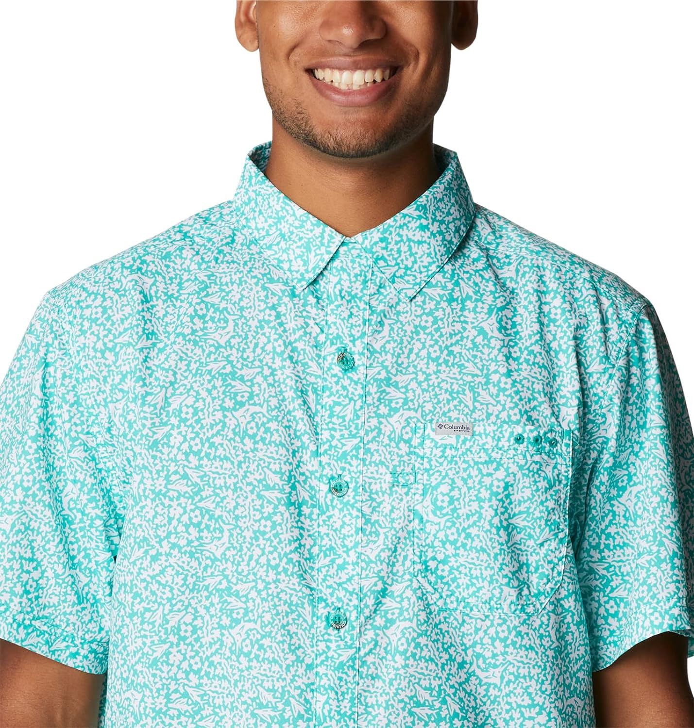 - La camisa de manga corta Columbia Pfg cuenta con la exclusiva tela UPF para máxima protección contra los rayos UVA y UVB, tela transpirable que absorbe la humedad para mantenerte fresco y seco mientras estás fuera.
